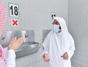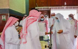كما التقى معاليه خلال الجولة بفرق الصيانة والتشغيل ومسؤولي الخدمات التقنية المشرفين على شاشات المكتبة الإلكترونية والتفاعلية التي تقدم الخدمات التوعوية بلغات عالمية، وشاهد معاليه المسارات واللوحات الإرشادية لتحقيق التباعد، وآلية دخول وخروج الحجاج؛ تحقيقاً للبروتوكولات الصحية لحماية الحجاج من وباء كورونا.