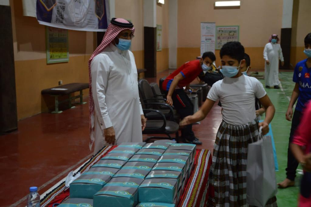 تطبيق الإجراءات الاحترازية من لبس الكمام والتباعد بين المشاركين وأولياء الأمور وذلك تدابير احترازية من جائحة كورونا.