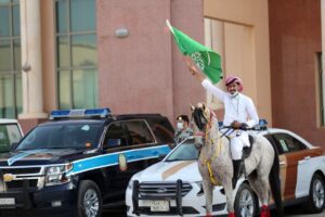 حيث بدئ الاحتفال برفع العلم الوطني، ثم بدأت مسيرة وعروض الخيل العربية الأصيلة، وتقديم الهدايا للمسافرين، أعقبها إطلاع الجميع على ركن مرسم الدار الوطني، وركن رسالتنا للدار، وأركان مشاركة الجهات المختلفة، وركن الأسر المنتجة، والالتقاء بأعضاء فريق وسم للبحث والإنقاذ.