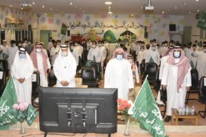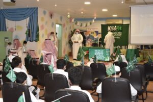 ضمن فعاليات الاحتفاء باليوم الوطني 91 تحت شعار # هي _ لنا _ دار، لوطن الخير أرض الأمن والأمان، والسلام والإسلام، حيث عمت الاحتفالات جميع مدارس البنين والبنات بمراحلها المختلفة في المدينة المنورة والمحافظات التابعة لها بهذه المناسبة؛ ذكرى توحيد المملكة العربية السعودية تحت لواء واحد وقيادة واحدة، وقد ضم برنامج الاحتفالات أكثر من( 23 )فعالية متنوعة وفق الإطار العام للاحتفاء باليوم الوطني(91)، تناولت محاور عدة منها : حفيد العز ـ عاشقينك ياوطن ـ البيارق الخضراء ـ قصة الأمجاد ـ مدن وأماكن ـ همة وقمة.
