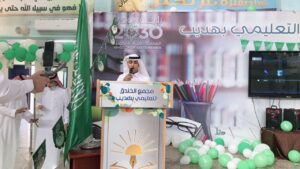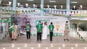 واستهل الحفل بتلاوة آيات من الذكر الحكيم، ثم ألقى مدير مكتب التعليم بصوير محمد الرويلي،كلمة أشار فيها إلى أن هذه المناسبة غالية على قلوبنا ,التي يجب أن يستشعر أبناؤنا الطلاب أهميتها من أجل نهضة الوطن وبسواعدهم تتحقق تطلعات ولاة الأمر – حفظهم الله -.