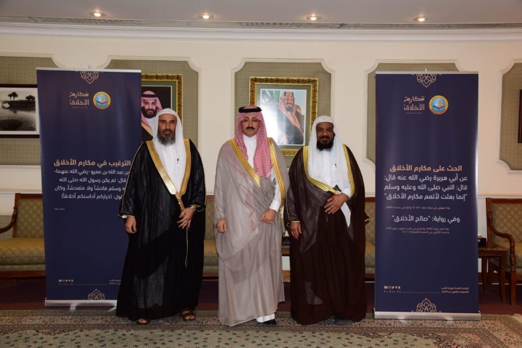 واستمع سموه لشرح من قبل فضيلة الشيخ محمد السبيت عن الحملة التي تأتي ضمن مسيرة الرئاسة العامة في إطلاق الحملات التوعوية لتحقيق رسالة الرئاسة وتحصيل أهدافها ومقاصدها الرامية لتعزيز الأخلاق الحسنة ومكانتها في الشريعة الإسلامية ، عبر تنفيذ عدد من البرامج التوعوية والتوجيهية ، التي تُؤكد على أهمية الأخلاق الحسنة ومكانتها في الشريعة الإسلامية .