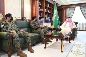وجرى خلال الاستقبال استعراض الموضوعات ذات العلاقة بتعزيز دور قيادة الأفواج بالمنطقة في حماية أمن الوطن بالتنسيق مع جميع الجهات الأمنية بما يسهم في إنجاز المهام والأعمال المناطة بها ، وفق توجيهات القيادة الرشيدة.