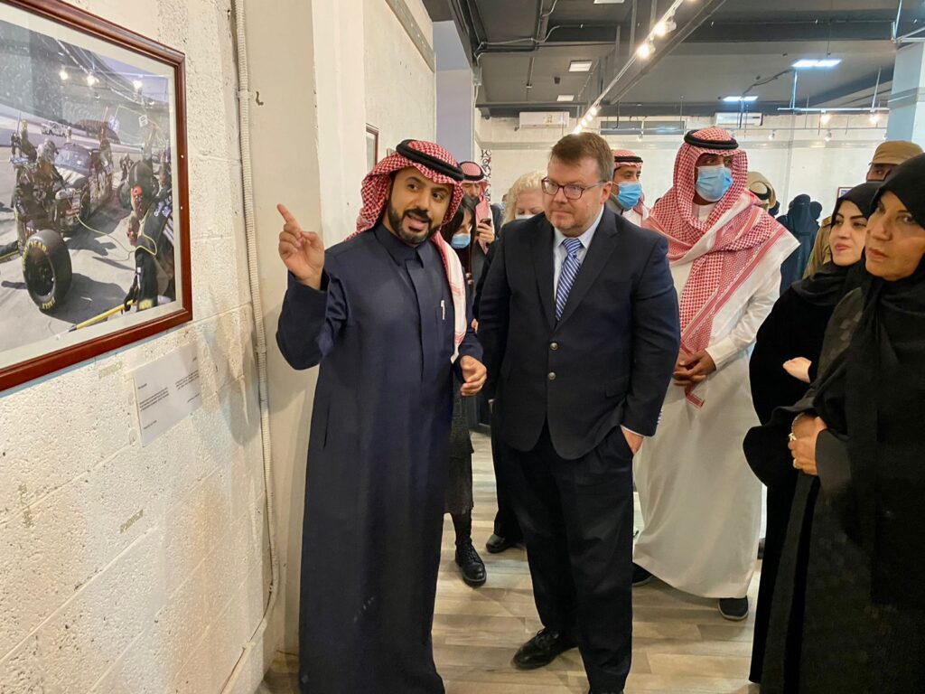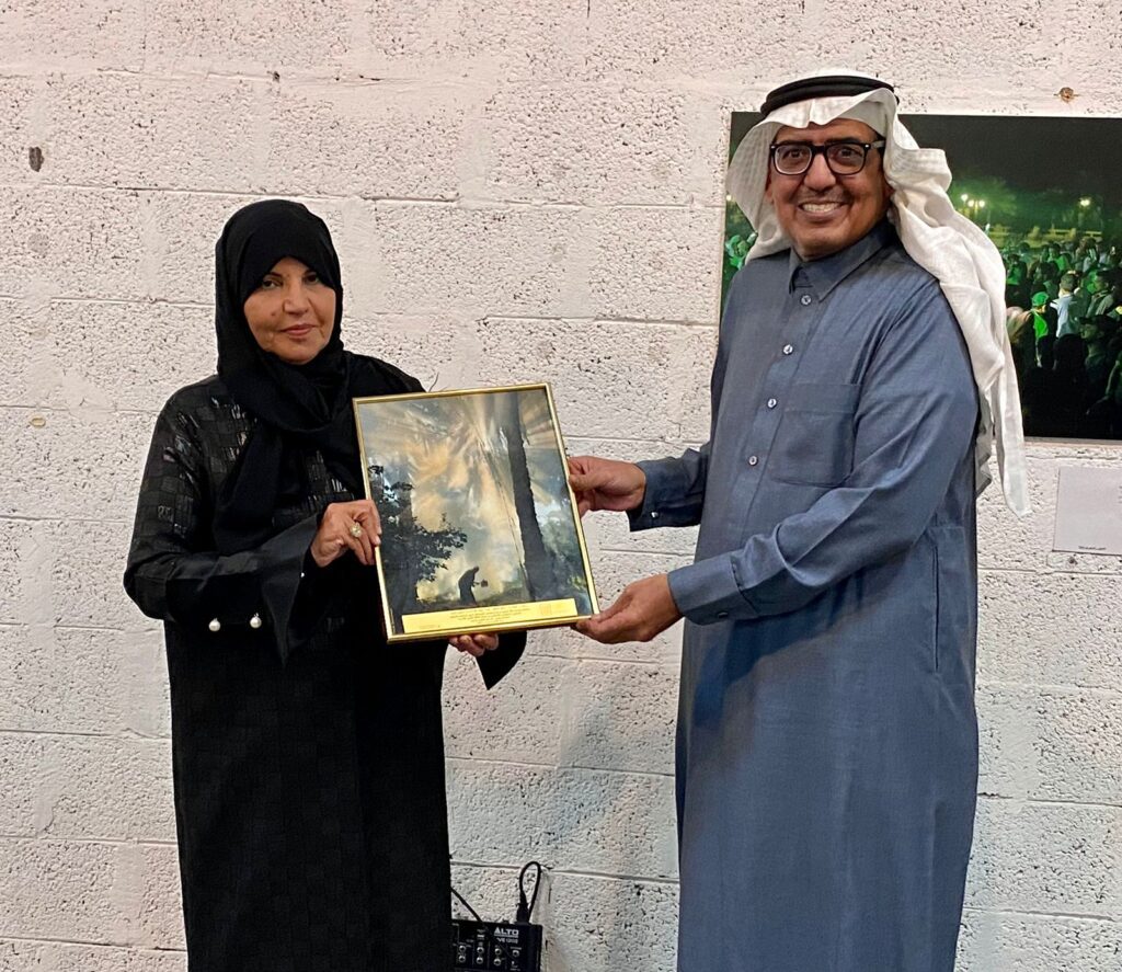 بعد ذلك توجه الجميع نحو صالة الأستاذ محمد الصندل للفنون البصرية وافتتاح المعرض الفوتوغرافي المشترك حيث استمع الحضور لشرح من قبل المصورين الفوتوغرافيين للوحاتهم التصويرية المعروضة وبمتابعة من مشرف لجنة التصوير الضوئي الاستاذ علي الأحمد وعلى وقع العزف المنفرد من قبل الفنان عبداللطيف البريكان فيما كان الحضور متفاعلا مع طريقة عرض الصور والتقارب فيما بينها من قبل المصور السعودي والمصور الأمريكي فيما قدم مدير الجمعية شكره وتقديره للقنصل الأمريكي و لسيدة الأعمال الاستاذة لطيفة العفالق على حضورهم وتشجيعهم المصوريين الفوتوغرافيين وكذلك لجميع المواهب الفنية بالجمعية.