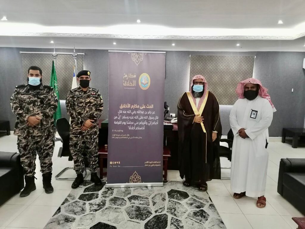 واستمع سعادته لشرح عن الحملة وأهدافها من فضيلة رئيس هيئة الأمر بالمعروف والنهي عن المنكر بمحافظة بقيق الشيخ حمد بن محمد المري ، والتي تشتمل على العديد من البرامج التوعوية التي تُعنى بالتوعية بأهمية مكارم الأخلاق الحسنة ، والتحذير من الأخلاق السيئة .