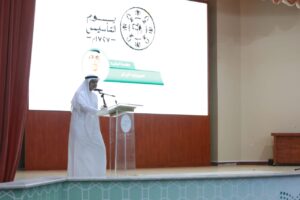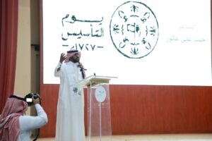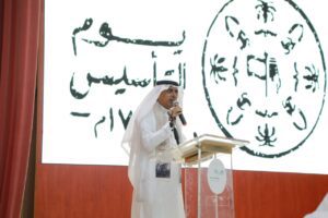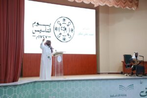 وتحدث “أبوهادي” في مستهل الحفل عن تاريخ الدولة السعودية التي ارتبطت بالمنجزات ونسجت قصة خالدة للاستمرار والنماء ، مضيفاً أن بلادنا الغالية تستحق الحب والتفاعل والشعور الوطني لأنها دولة عظيمة قدمت الكثير لأبنائها وامتد أثرها الطيب للعالم أجمع ، مبيناً أن المملكة وعبر كافة مراحلها التاريخية لطالما شكلت مضرب المثل في العدل والسلام والأمن والأمان والرخاء ، معبراً عن إعجابه بما شاهده من مشاعر وطنية لمنسوبي ومنسوبات التعليم والطلاب والطالبات في التغني بوطنهم وقيادته ، مقدماً الشكر للقائمين على تنفيذ الحفل .