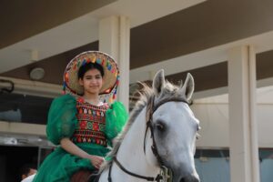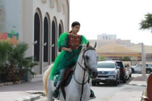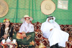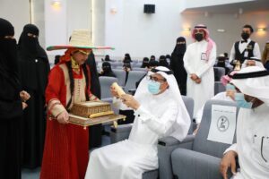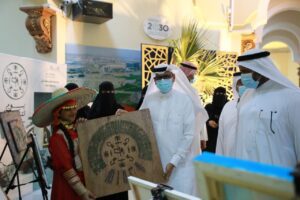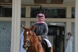 ودشن “أبوهادي ” لدى وصوله المعرض المصاحب للحفل والذي ضم إبداعات منسوبي ومنسوبات التعليم الفوتوغرافية والفنية التي تحاكي تاريخ بلادنا العظيمة وتبرز جذورها الراسخة والممتدة لأكثر من ثلاثة قرون ، كما شاهد عرضاً لفرسان وفارسات التعليم على الخيول العربية الأصيلة شارك في العرض الحصان العربي (الحاكم ديراب) وهو من الخيل العربية الاصيلة حيث يُعد من أعرق أنساب الخيل لأصوله وعروبته ويعود نسبه لأكثر من ١٥٠ سنة .