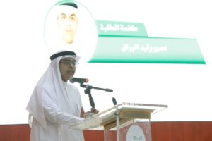 تلا ذلك كلمة ألقاها الطالب عمرو البراق نيابة عن الطلاب والطالبات تحدث فيها عن فخره واعتزازه بانتمائه لبلادنا الغالية ، مستعرضا أقوال أئمة وملوك بلادنا والتي شكلت نبراساً للمواطنين والمواطنات وزادت من فخر الجميع بوطنهم ، منوهاً بما يجده أبناء وبنات الوطن من اهتمام ودعم من القيادة الرشيدة خصوصا في الجانب التعليمي ، كما قدم الشاعر المعلم أحمد عكور قصيدة وطنية تغنى فيها بمسيرة الوطن منذ التأسيس حتى العهد الزاهر لخادم الحرمين الشريفين الملك سلمان بن عبدالعزيز حفظه الله .