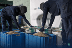 وذكرت أنه بعد إتمام عملية الضبط، وبالتنسيق مع المديرية العامة لمكافحة المخدرات، لضمان القبض على مستقبلي المضبوطات، تمّ -بفضل الله- القبض عليهم وعددهم شخصان.