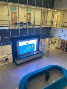 فعل فرع الرئاسة العامة لهيئة الأمر بالمعروف والنهي عن المنكر بمنطقة القصيم المحتوى التوعوي لحملة(إن الله لا يصلح عمل المفسدين)في جامعة سليمان الراجحي الأهلية عبر الشاشات الإلكترونية والرقمية، المنتشرة في مباني ومرافق الجامعة، وذلك في إطار الشراكة بين هيئة الأمر بالمعروف والنهي عن المنكر وجامعة سليمان الراجحي الأهلية.