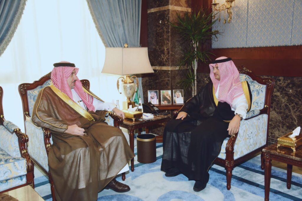 استقبل صاحب السمو الملكي الأمير سعود بن طلال بن بدر آل سعود محافظ الأحساء بمكتب سموه بمقر المحافظة اليوم ” الثلاثاء ” ، أمير الفوج الرابع عشر بالأحساء سعادة الأستاذ خالد بن سلطان بن قرمله