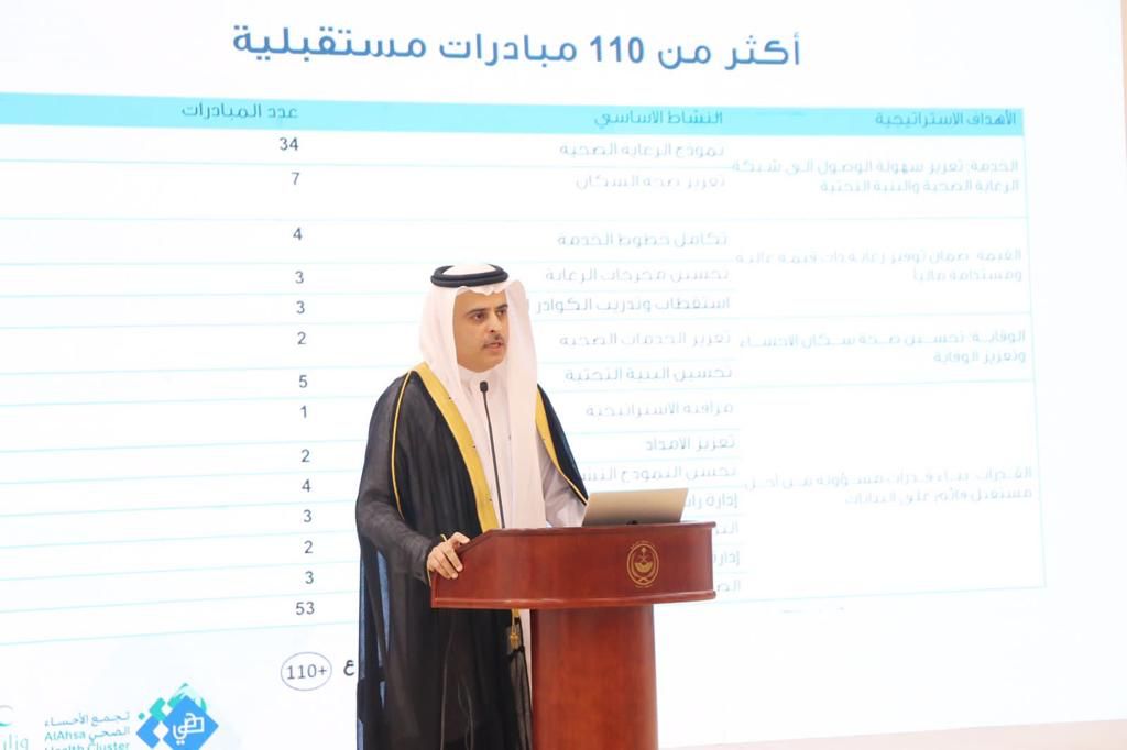 عقب ذلك اطلع سموه على عرض مرئي قدمه الرئيس التنفيذي لتجمع الاحساء الصحي الدكتور خالد بن محمد الملا تضمن أبرز الخطط والبرامج التي تم إنجازها خلال مسيرة التجمع الصحي، ومؤشرات الأداء، والمشاريع المستقبلية، والشراكات المجتمعية، واختتم العرض بتقديم الشكر للقيادة الرشيدة ممثلة بمقام وزارة الصحة على الاهتمام والمتابعة لكل ما من شأنه الارتقاء بمستوى الخدمات الصحية في وطننا الغالي بوجه عام وفي الأحساء بشكل خاص.