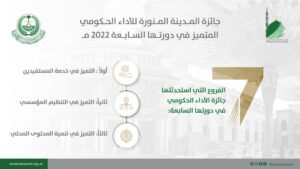 والجدير بالذكر أن هذه الجائزة تم تصميمها لتعزيز وتشجيع التنافس والتعاون وتبادل الخبرات المعرفية بين المنشآت الحكومية وتمكينهم لإحداث الأثر الإيجابي في مجالي التميز والابتكار على المستوى المحلي والوطني وفق أفضل الممارسات العالمية.