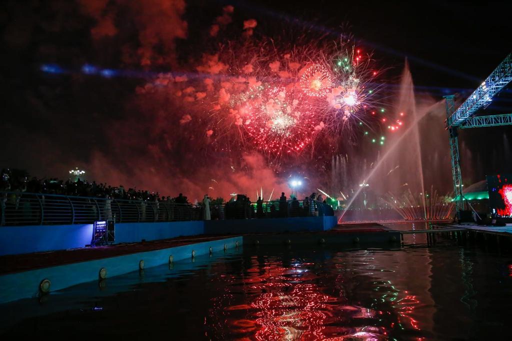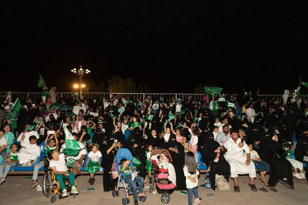 وشهدت سماء المنتزه لمدة 7 دقائق متواصلة، عروض الألعاب النارية، التي أضاءت سماء المتنزه، وأضفت البهجة والسرور على زوار المنتزه، والمناطق المجاورة للمنتزة ، كما شملت فعاليات الحفل، مشاركة الفرقة الموسيقية التابعة للحرس الوطني في تقديم بعض المعزوفات الموسيقية الوطنية، التي نالت استحسان، وتفاعل معها الحضور بترديد تلك الأهازيج.