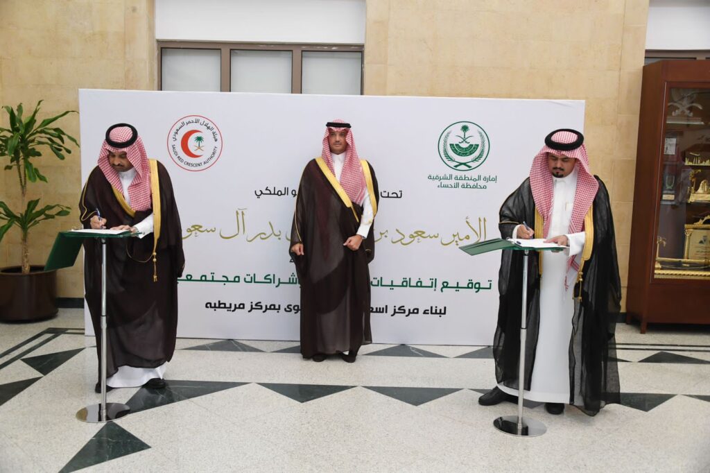 شهد صاحب السمو الملكي الأمير سعود بن طلال بن بدر محافظ الأحساء ، اليوم الاثنين بمقر المحافظة ، توقيع اتفاقية شراكة وتعاون ” لإنشاء مركز اسعافي بمركز مريطبة “تابع لهيئة الهلال الأحمر السعودي ، حيث مثّل هيئة الهلال الأحمر السعودي في توقيع المذكرة مدير عام فرع الهيئة بالمنطقة الشرقية الدكتور خالد بن راضي العنزي من جهة ، وعلى الجانب الاخر رجل الاعمال علي بن بخيت بن فاران المري .