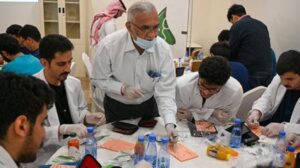 و قد هدفت ورشة العمل إلى معرفة أهم الأدوات الجراحية و كيفية خياطة الجروح باختلاف أنواعها، وقد تجاوز عدد الحضور في هذي الورشة ٤٠ طالب.