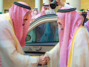 ولدى وصول خادم الحرمين الشريفين كان في استقباله – أيده الله -، صاحب السمو الملكي الأمير فيصل بن بندر بن عبد العزيز أمير منطقة الرياض، وصاحب السمو الملكي الأمير محمد بن عبد الرحمن بن عبد العزيز نائب أمير منطقة الرياض، ومعالي وكيل إمارة منطقة الرياض الدكتور فيصل السديري، وعدد من المسؤولين.