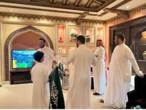 وأظهرت الصور مدى فرحة سمو ولي العهد بعد فوز المنتخب السعودي على الأرجنتين هذا اليوم، في انتصار تاريخي، حيث ظهرت أعلام المملكة وتجلت مشاعر الفخر والاعتزاز بأداء اللاعبين السعوديين على أرض الميدان.