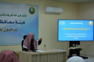 نفذت وحدة الأمن الفكري بالرئاسة العامة لهيئة الأمر بالمعروف والنهي عن المنكر ورشة عمل لمنسوبي هيئة محافظة وادي الدواسر بعنوان(تعزيز الانتماء والولاء الوطني)قدمها فضيلة مدير عام فرع الرئاسة العامة لهيئة الأمر بالمعروف والنهي عن المنكر بمنطقة الرياض الشيخ عبدالله بن محمد الشبانات، بحضور رئيس هيئة وادي الدواسر الشيخ ناصر الذروي، وذلك بقاعة التدريب التابعة للتنمية الاجتماعية بالمحافظة.