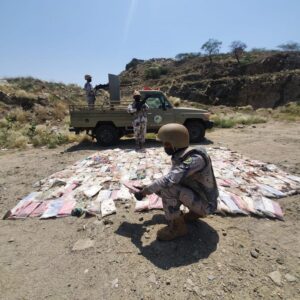 صرّح المتحدث الرسمي للمديرية العامة لحرس الحدود العقيد مسفر القريني، بأن الدوريات البرية لحرس الحدود في مناطق نجران وجازان وعسير وتبوك، أحبطت محاولات تهريب (18.2) طناً من نبات القات المخدر وطن و(526) كيلوجرامًا من مادة الحشيش المخدر، خلال الفترة من 1 إلى 14 / 6 / 1444ه، وقبضت على مهربيها، وعددهم (309) متهمين، منهم (10) مواطنين، و(299) مخالفًا لنظام أمن الحدود، وهم: (264) من الجنسية اليمنية، و(33) من الجنسية الإثيوبية و(2) من الجنسية الصومالية، وجرى استكمال الإجراءات النظامية الأولية بحقهم، وتسليمهم والمهربات لجهة الاختصاص.