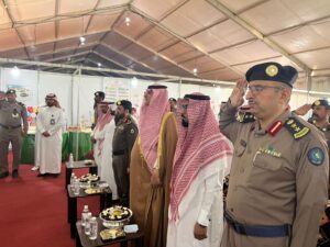 بمهرجان بيشة احلى وفور وصول المحافظ استقبله الكشافة بصيحة ترحيبية بعد ذلك قام بقص شريط المعرض تجول بعد ذلك في المعرض والذي شاركت فيه عدد من الادارات الحكومية وقد استمع إلى شرح عن هذه الاركان والتي تشتمل على السلامة ووسائلها وكذلك استمع إلى شرح عن أحدث الاليات المستخدمة في ادارة الدفاع المدني بالمحافظة بعد ذلك أقيم حفل خطابي بهذه المناسبة ألقى فيه مدير الدفاع المدني ببيشة العقيد سعيد حسن العمري